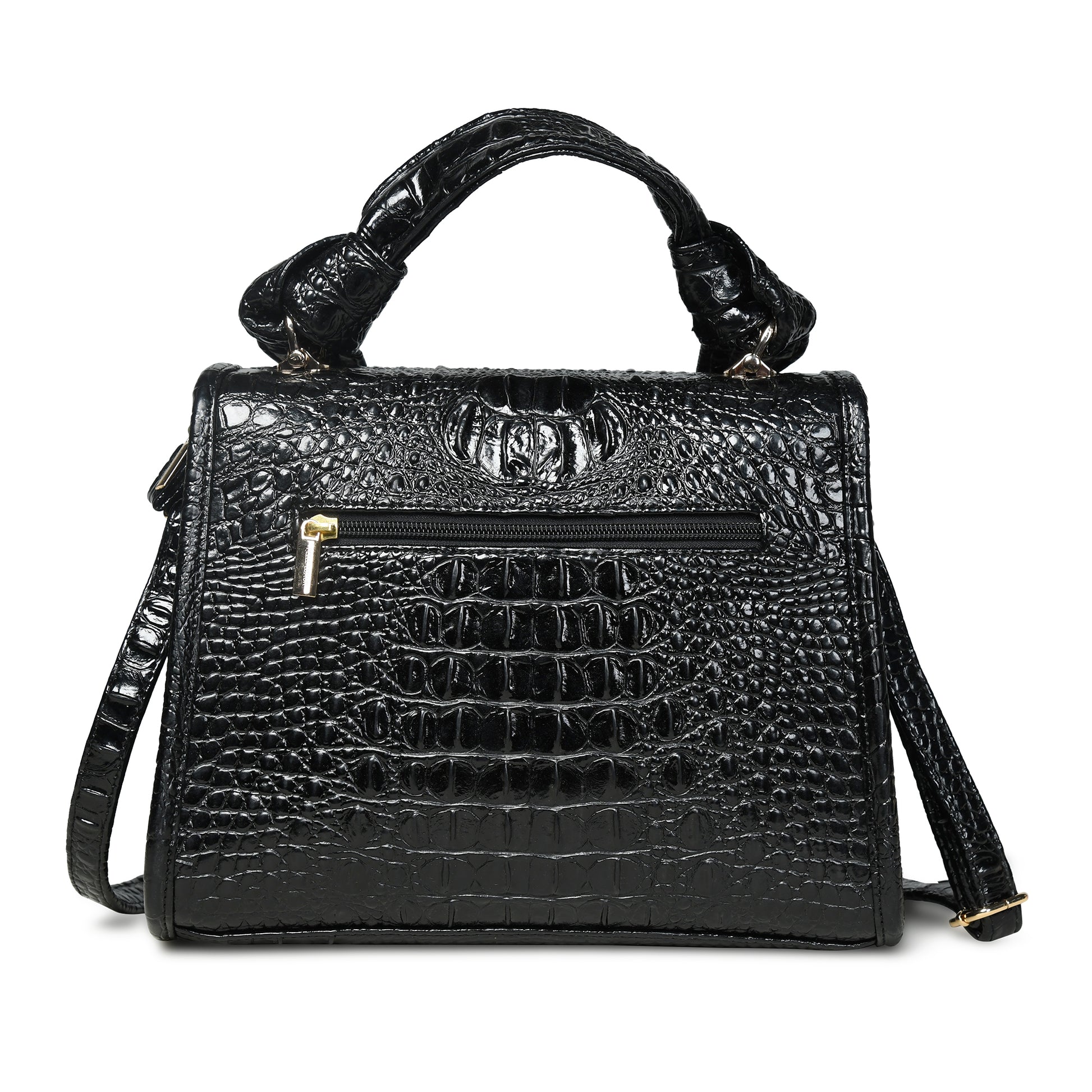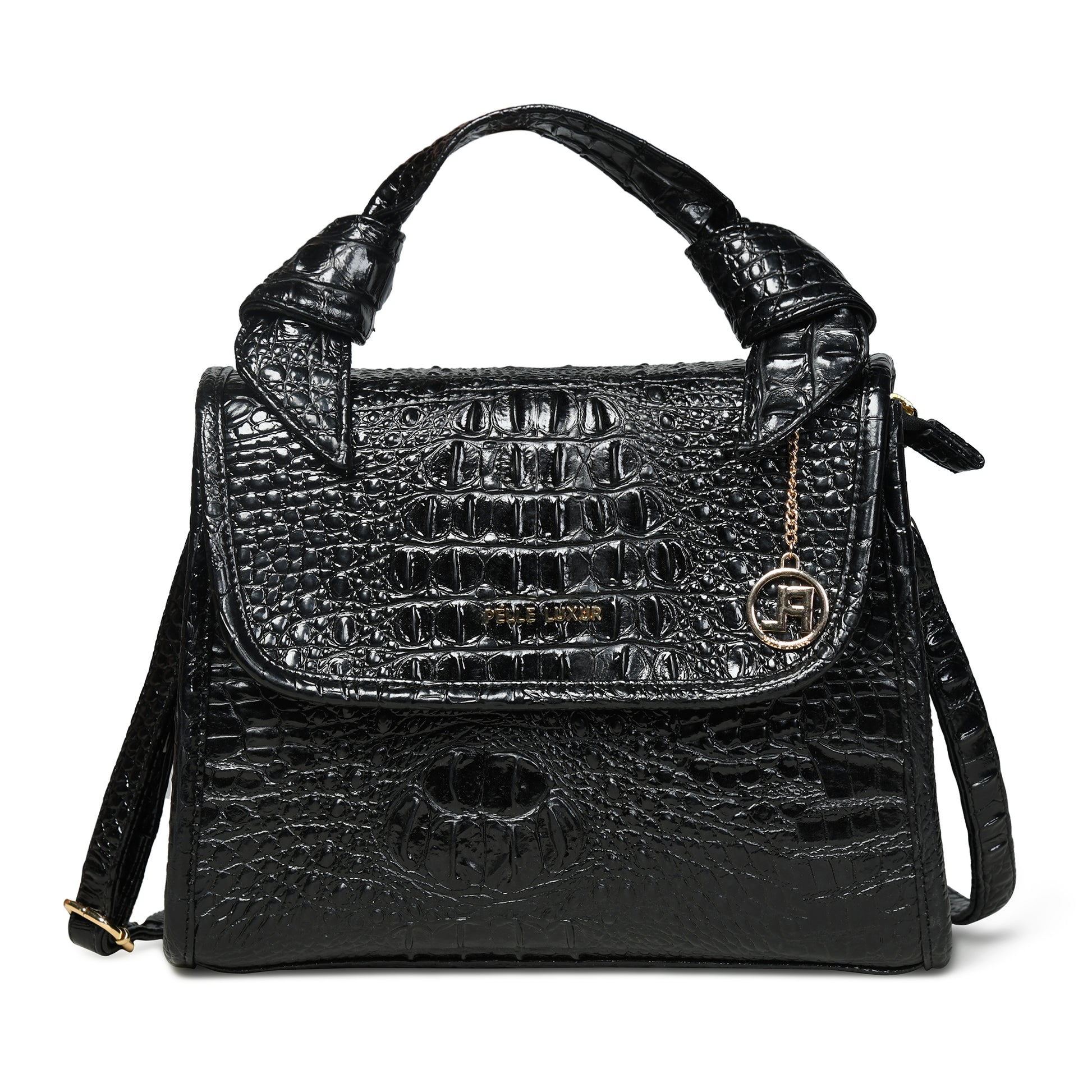 Pelle Luxur Women's Black, Premium PU Satchel Bag, Medium Size with Magnet clasp Closure